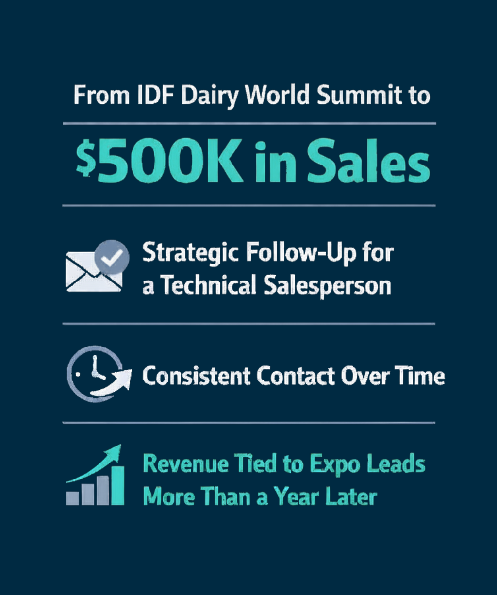 A manufacturer needed a better way for its technical salesperson to stay consistent with trade show follow-up. I created a strategic follow-up program that made it easier to keep in touch with new contacts, deliver useful communication over time, and avoid the drop-off that so often happens after events. More than a year later, that steady follow-up contributed to $500,000 in sales directly tied to contacts first made at the IDF Summit.